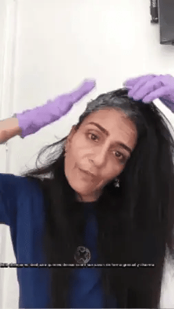 - Colóquese los guantes de plástico (incluidos) antes de abrir el sobre de champú. 🧤